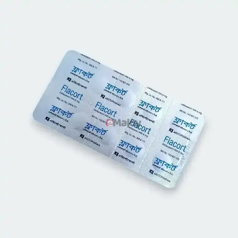 Presentation: Each tablet of Flacort 6 contains 6 mg of deflazacort. Flacort 6 is available in blister packs containing a specific number of tablets. Please refer to the product packaging for exact details.