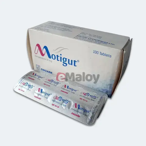 Motigut 10 is a tablet containing 10 mg of Domperidone. Domperidone is a prokinetic and antiemetic agent. It works by blocking dopamine receptors in the brain's vomiting center and by increasing the movement of food through the stomach and intestines. Motigut 10 is manufactured by Square Pharmaceuticals PLC in Bangladesh.