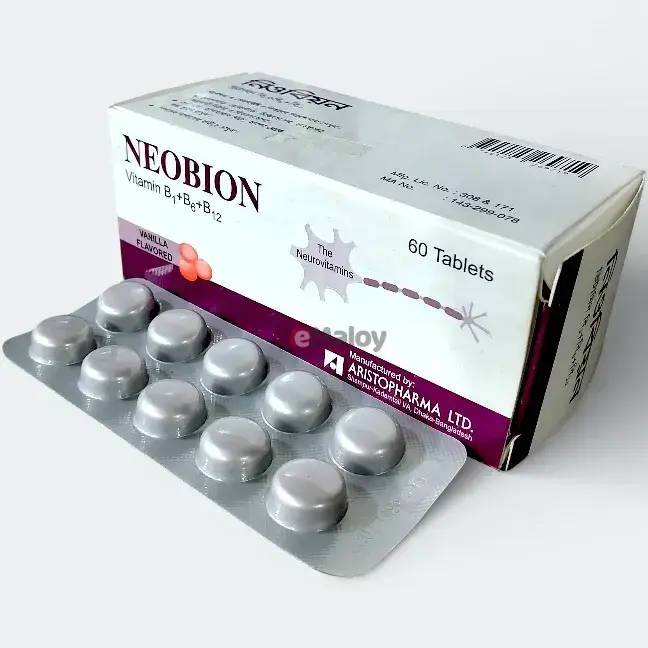 Indications: Neobion is indicated for the treatment and prevention of Vitamin B-complex deficiencies. These deficiencies can arise from inadequate dietary intake, malabsorption syndromes, increased nutritional requirements during illness or stress, and certain medical conditions. Neobion helps to support energy production, nerve function, red blood cell formation, and overall metabolic processes. It is often used as a general supplement to promote well-being.