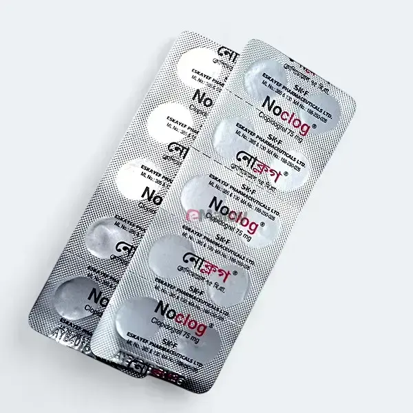 Noclog 75 is a brand name for a medication containing Clopidogrel Bisulphate 75 mg.It is manufactured by Eskayef Pharmaceuticals Ltd. in Bangladesh.