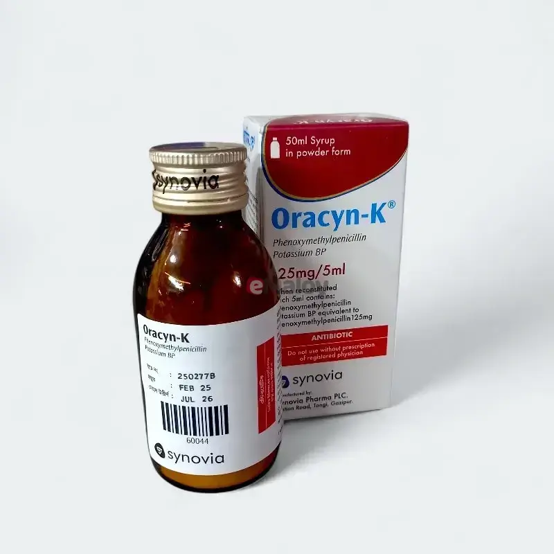 Oracyn-K contains Phenoxymethyl Penicillin (also known as Penicillin V). It is an acid-stable oral antibiotic indicated for the treatment of mild to moderately severe bacterial infections caused by penicillin-susceptible pathogens. It is effective against a range of infections, including those of the ear, nose, throat, respiratory tract, skin, and oral cavity. It is also used for the prophylaxis of scarlet fever, rheumatic fever, and for preventing infections after dental procedures in high-risk patients. Oracyn-K belongs to the therapeutic class of Benzylpenicillin & Phenoxymethyl penicillin.