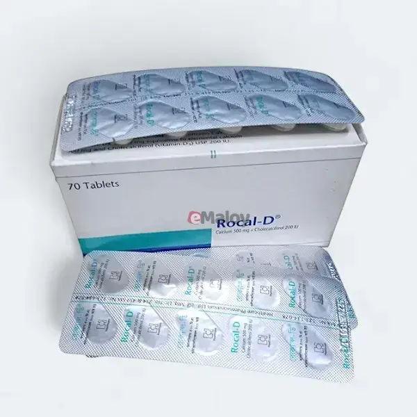 Indications: Rocal D is indicated for the treatment and prevention of calcium and Vitamin D3 deficiency, which can occur in conditions such as osteoporosis, osteomalacia, and rickets. It is also used as a supplement to ensure adequate calcium intake during periods of increased demand, including childhood growth, pregnancy, and lactation, as well as in elderly individuals with poor dietary intake or absorption. It may also be used as an adjunct in the management of hypoparathyroidism and tetany.