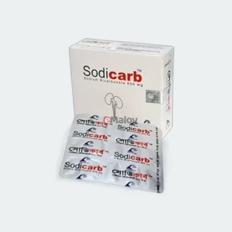 Indications: Sodicarb 600 is indicated for the treatment of metabolic acidosis, which can occur in conditions such as severe renal disease, uncontrolled diabetes, circulatory insufficiency due to shock, severe dehydration, and primary lactic acidosis. It is also used as an antacid to relieve heartburn and acid indigestion, and to alkalinize the urine to promote the excretion of certain drugs or in the management of uric acid nephropathy.