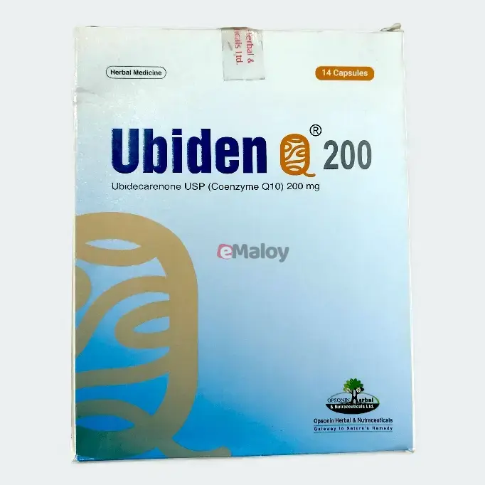 Presentation: Capsules containing Coenzyme Q10 (Ubidecarenone) 200 mg.