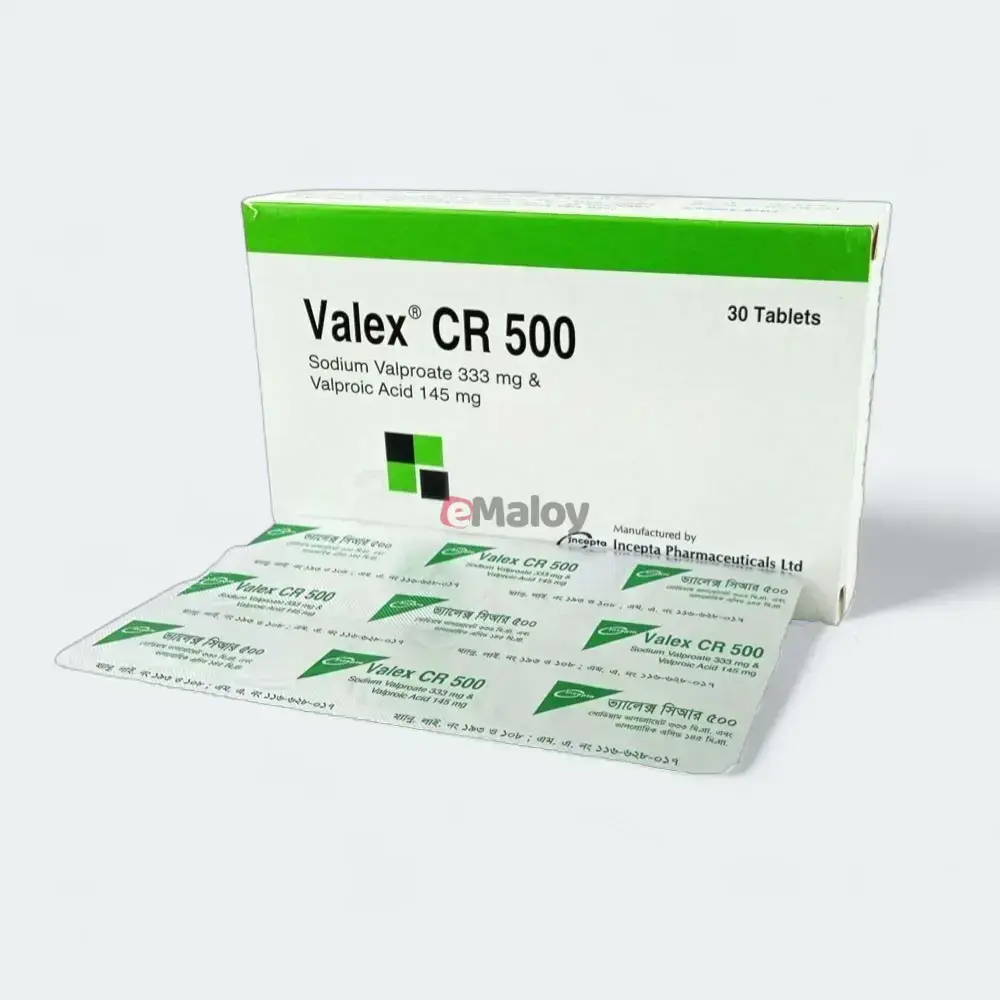 Indications: Valex CR (Sodium Valproate Controlled-Release) is indicated for the treatment of generalized tonic-clonic seizures (grand mal), absence seizures (petit mal), myoclonic seizures, and mixed seizure patterns including absence seizures. It is also used for the treatment of manic episodes associated with bipolar disorder and for the prophylaxis of migraine headaches. The controlled-release formulation is designed to provide sustained release of the active ingredient, allowing for less frequent dosing and potentially more stable blood levels.